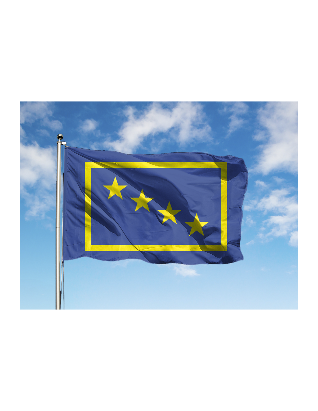 Bandiera Capitano di Stato Maggiore Marina in poliestere nautico conf. con doppie cuciture, guaina e corda. Dimensioni disponibili: cm 80x120, cm 120x180, cm 200x300.