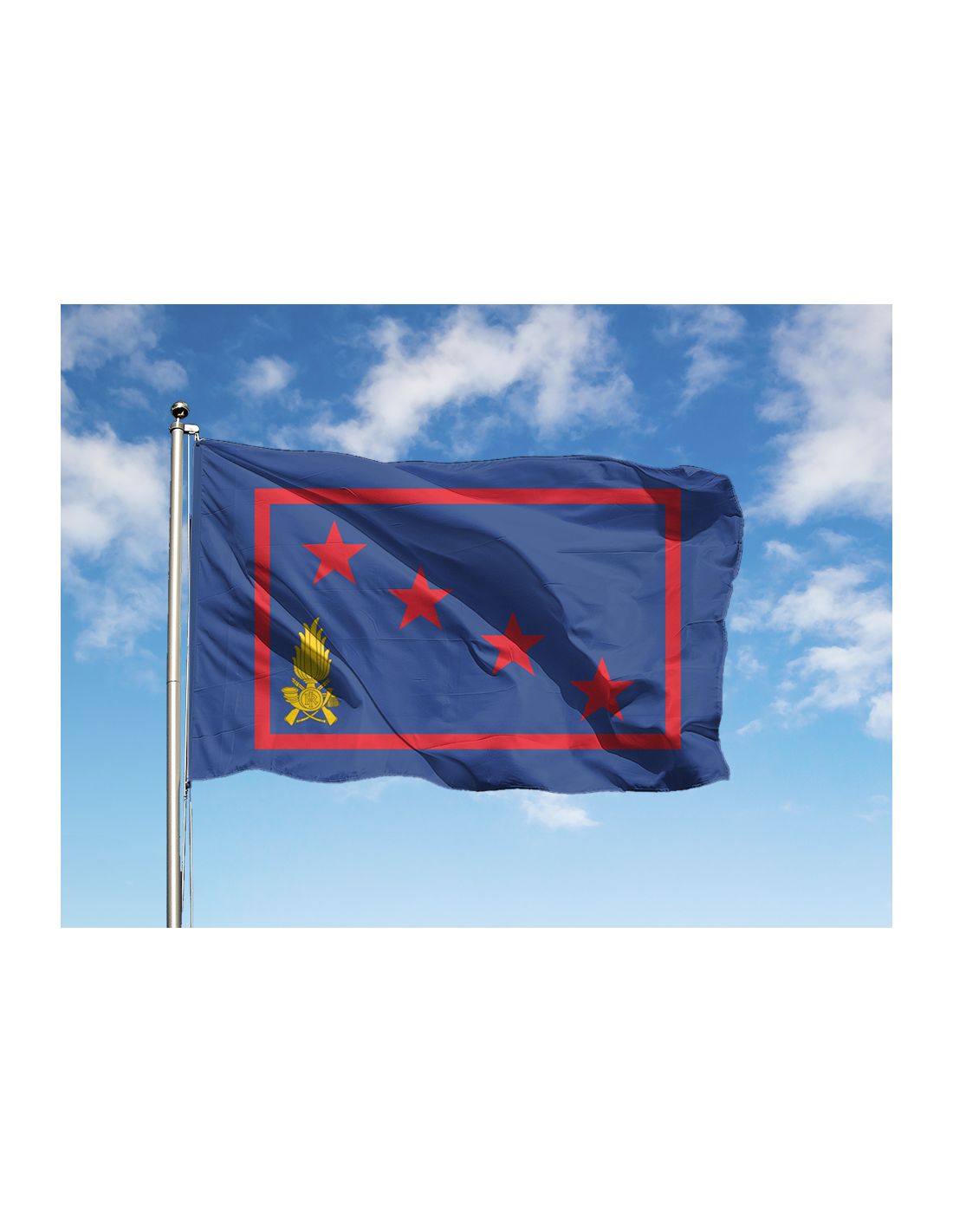 Bandiera Comandante Generale G.D.F. in poliestere nautico conf. con doppie cuciture, guaina e corda. Dimensioni disponibili: cm 80x120, cm 120x180, cm 200x300.
