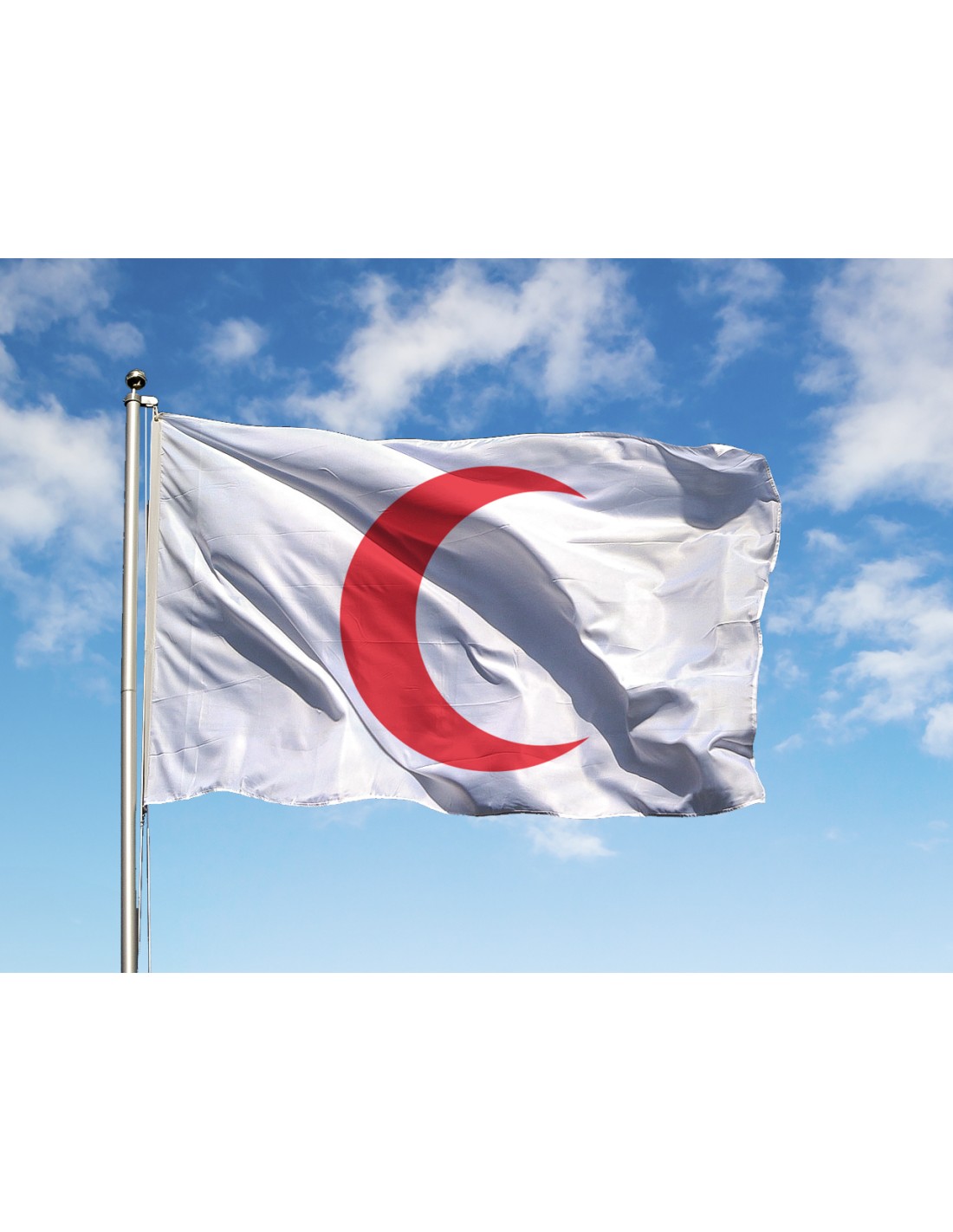 Bandiera Mezzaluna Rossa in poliestere nautico conf. con doppie cuciture, guaina e corda.