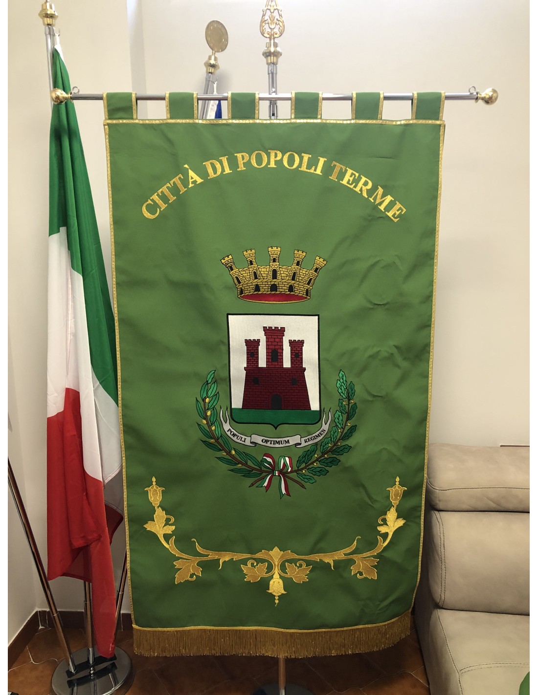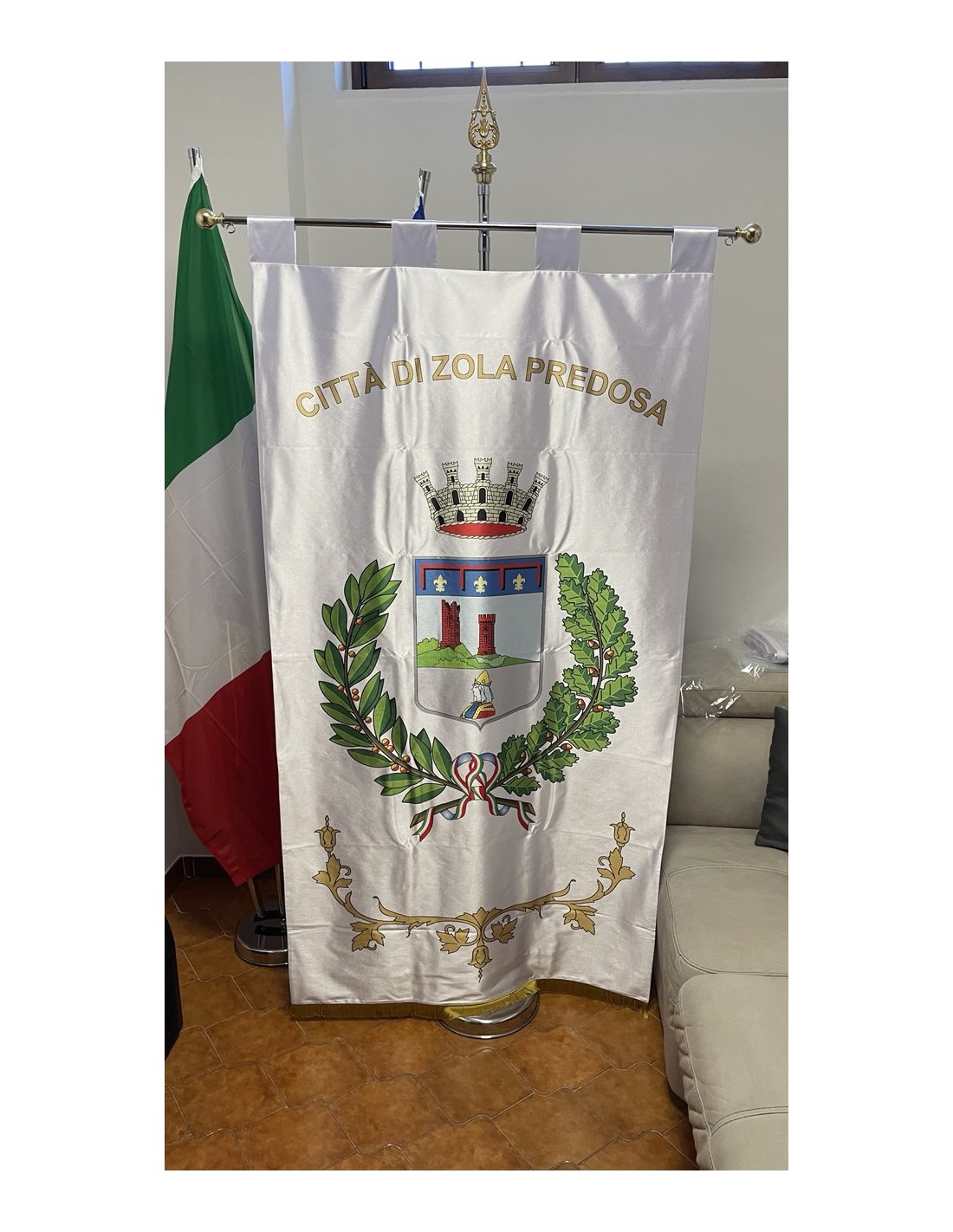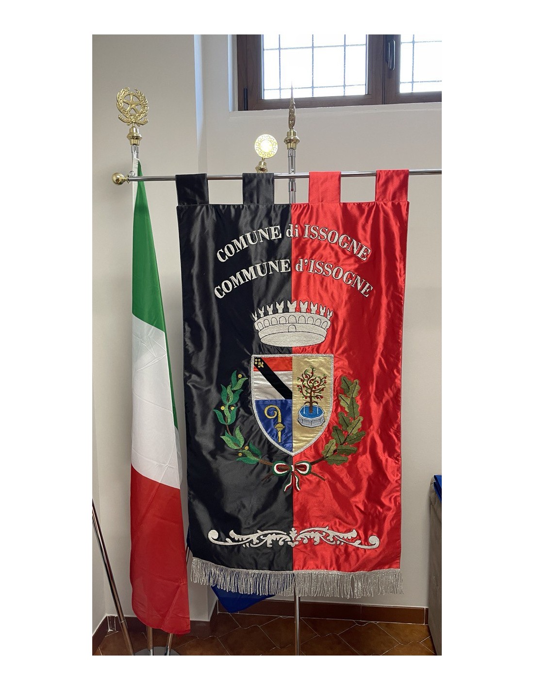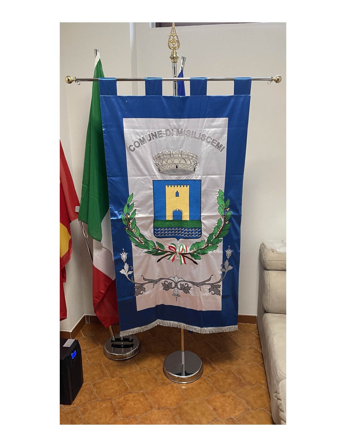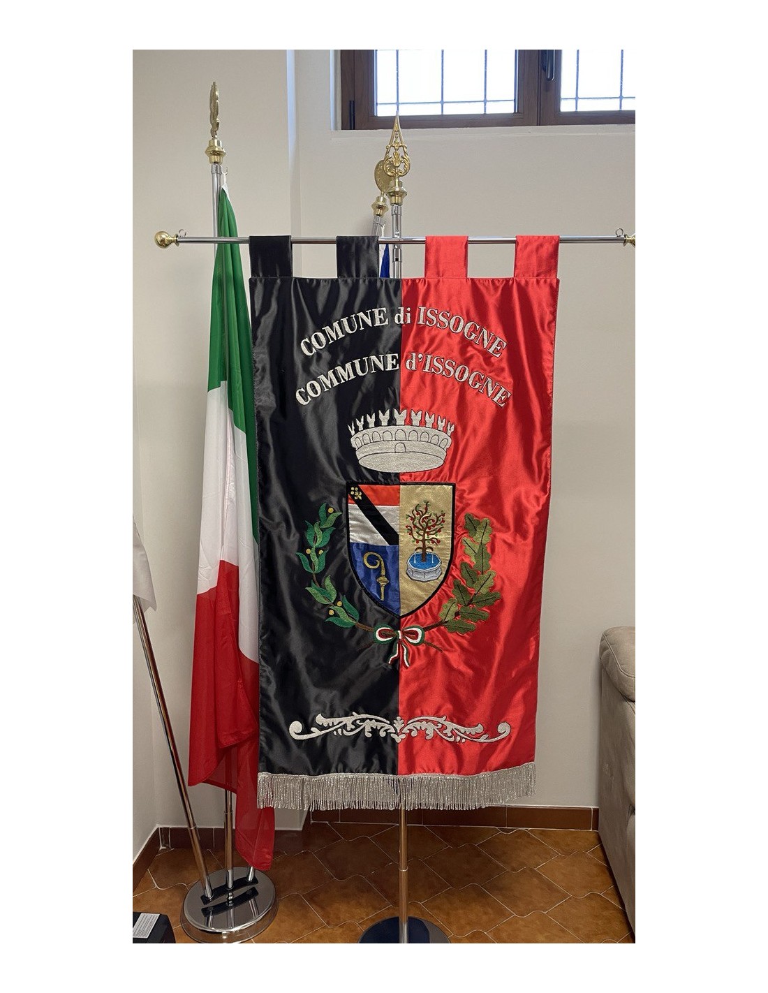 Gonfalone ricamato con code 100,00 iva esclusa di lavorazione aggiuntiva.