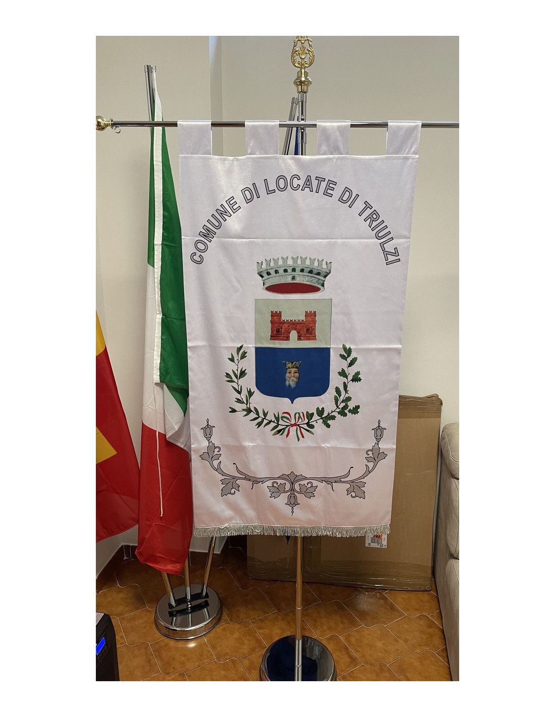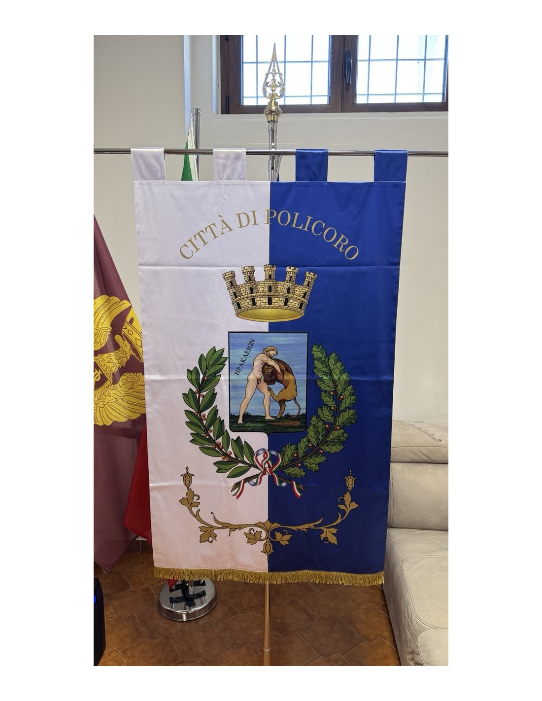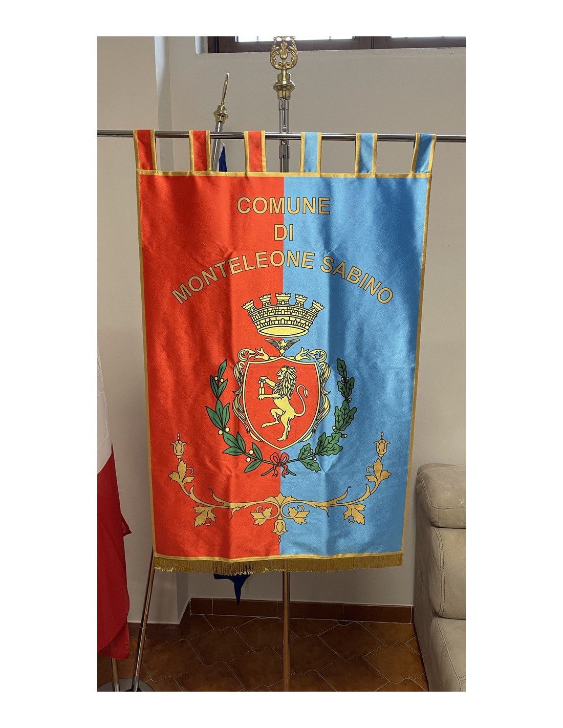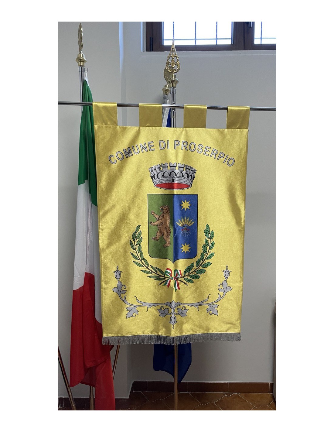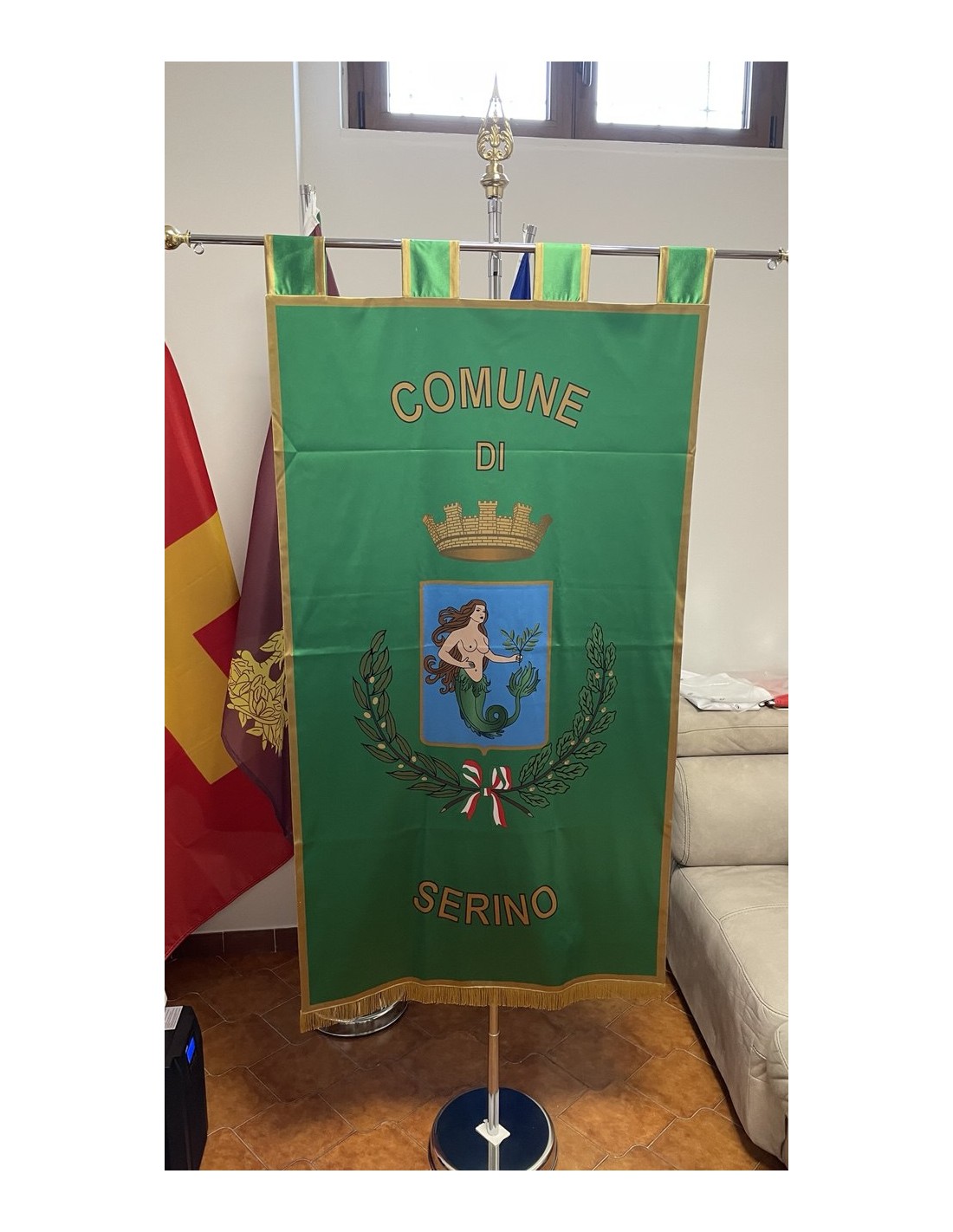 Gonfalone Stampato per Comuni con eccellente qualità, leggero e maneggevole. ideale per essere trasportato.
