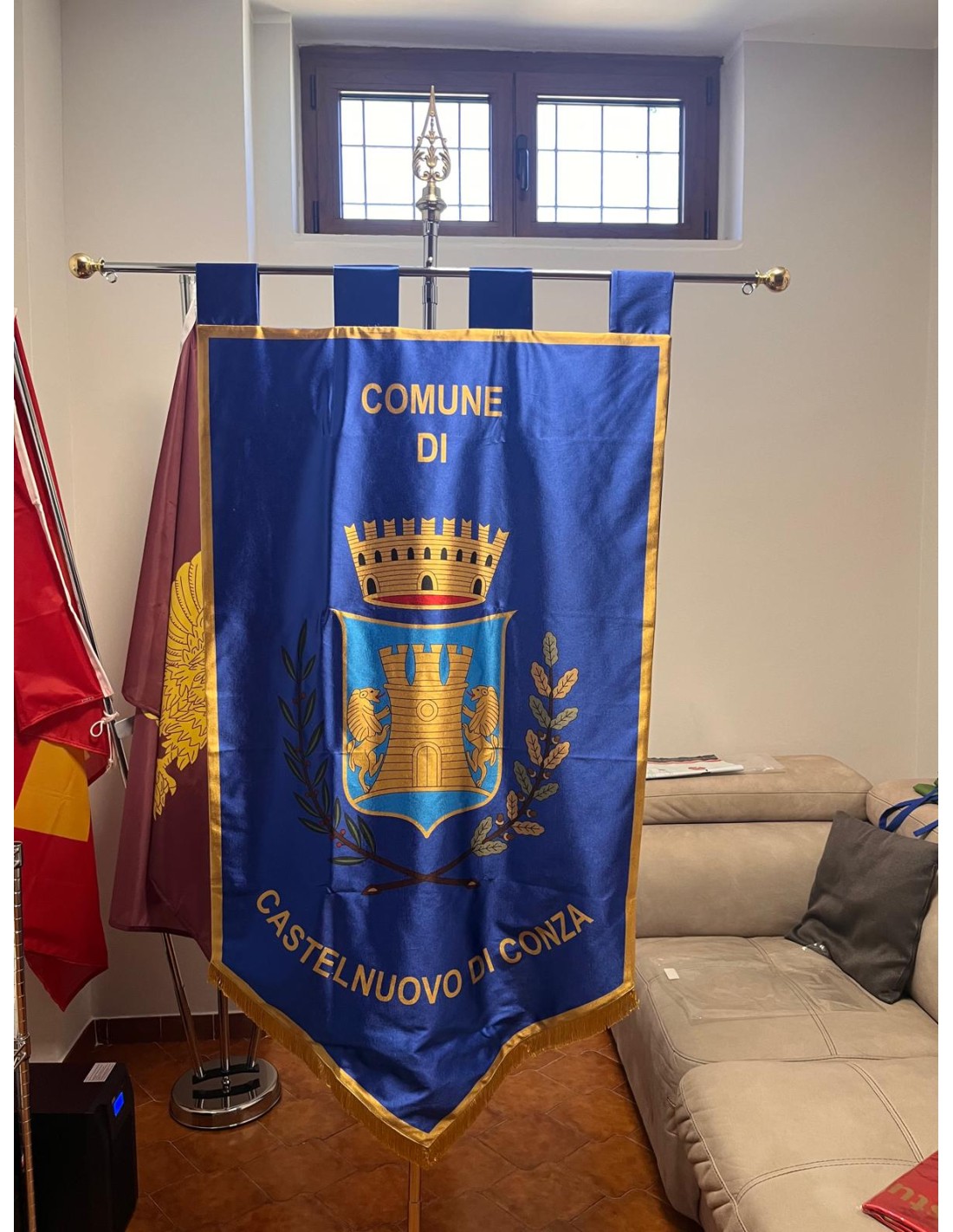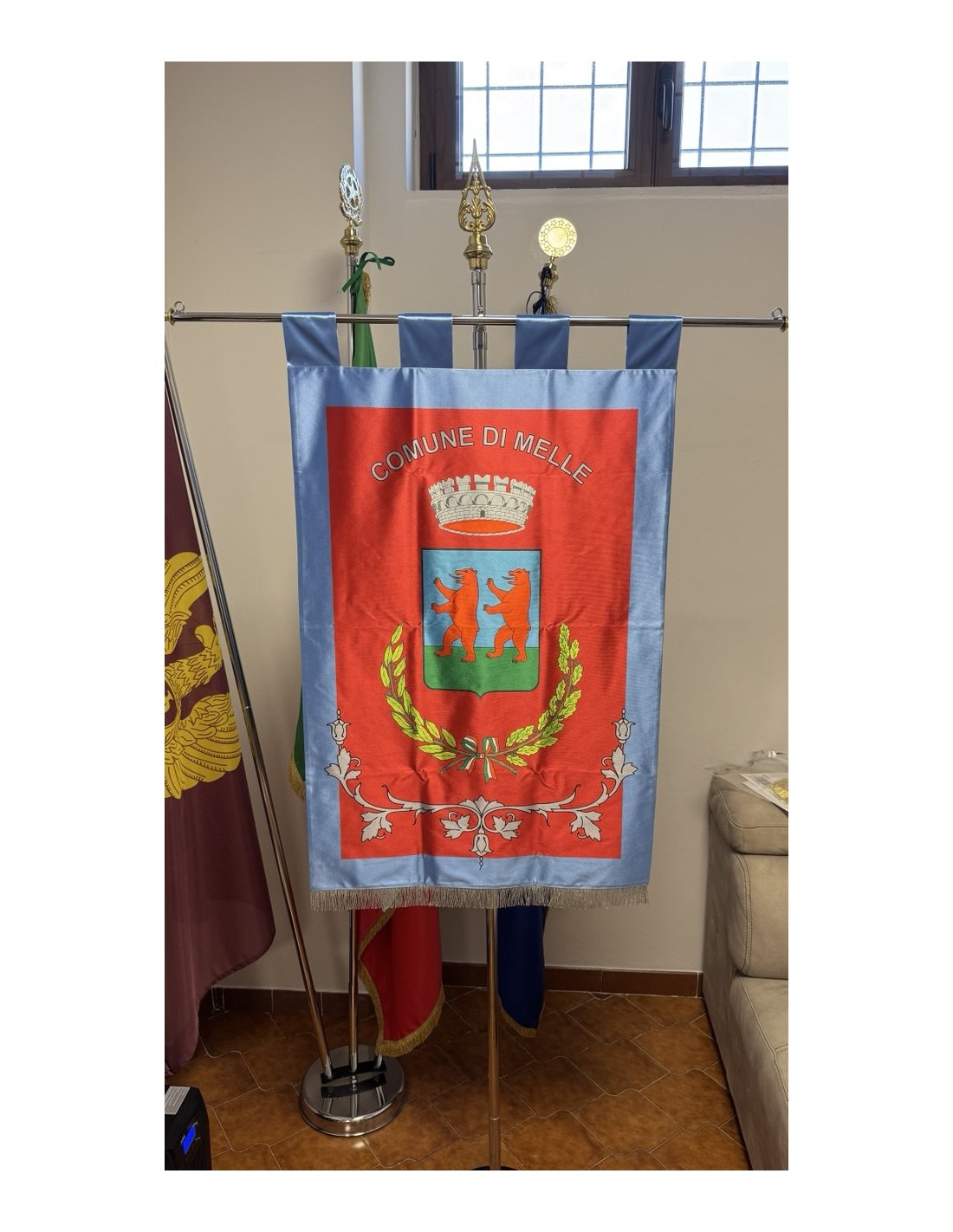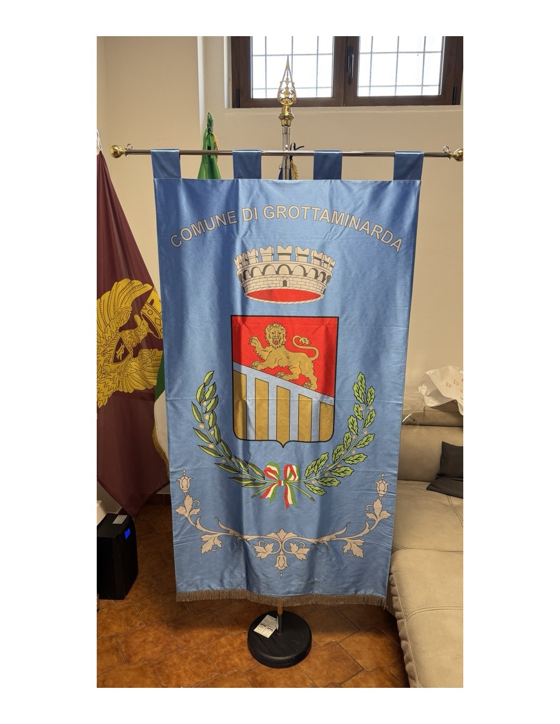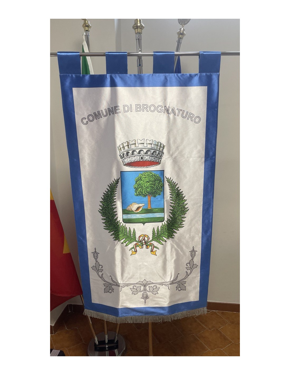 Gonfalone Stampato per Comuni con eccellente qualità, leggero e maneggevole. ideale per essere trasportato.