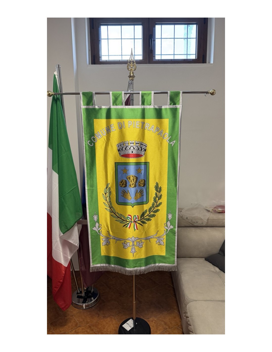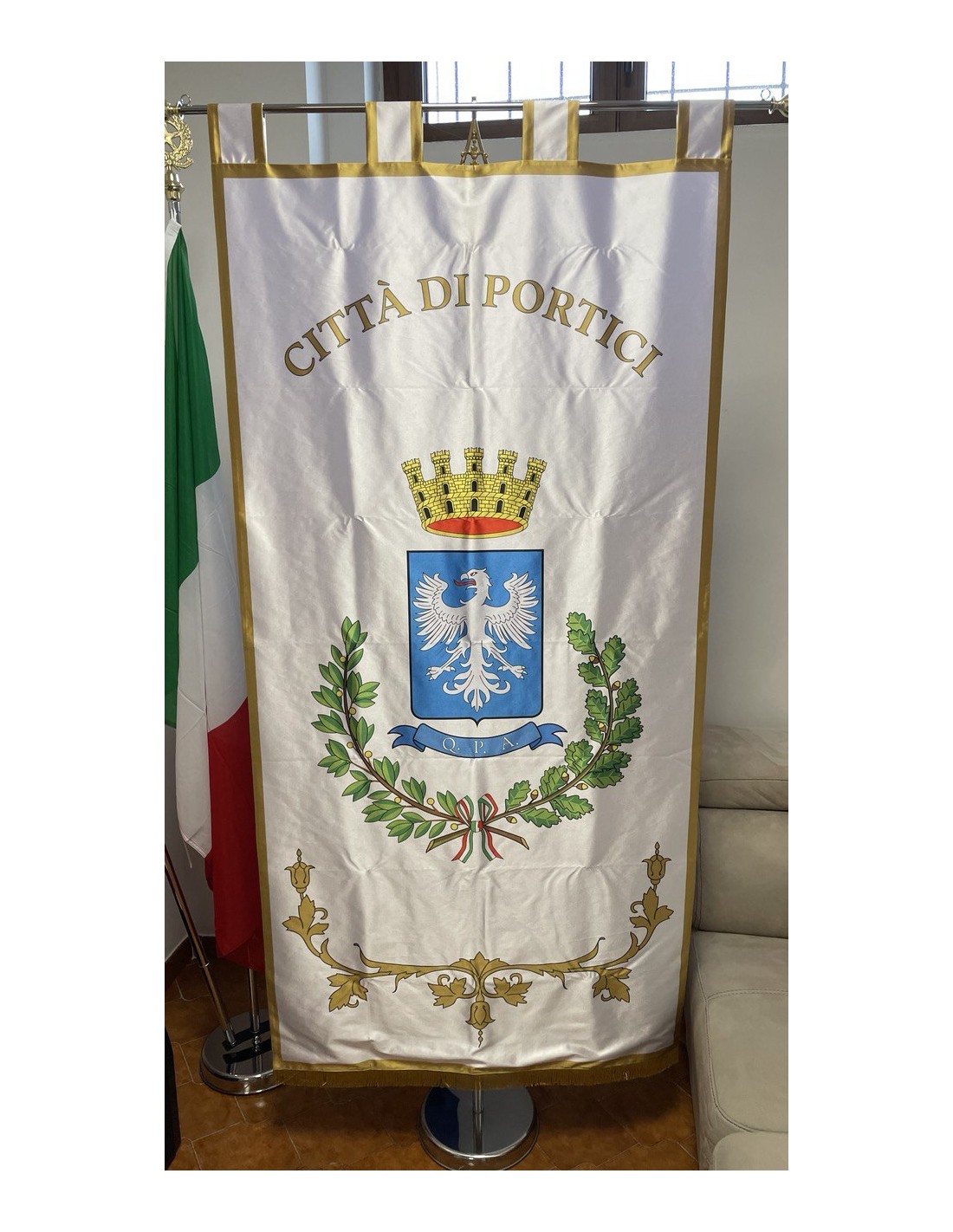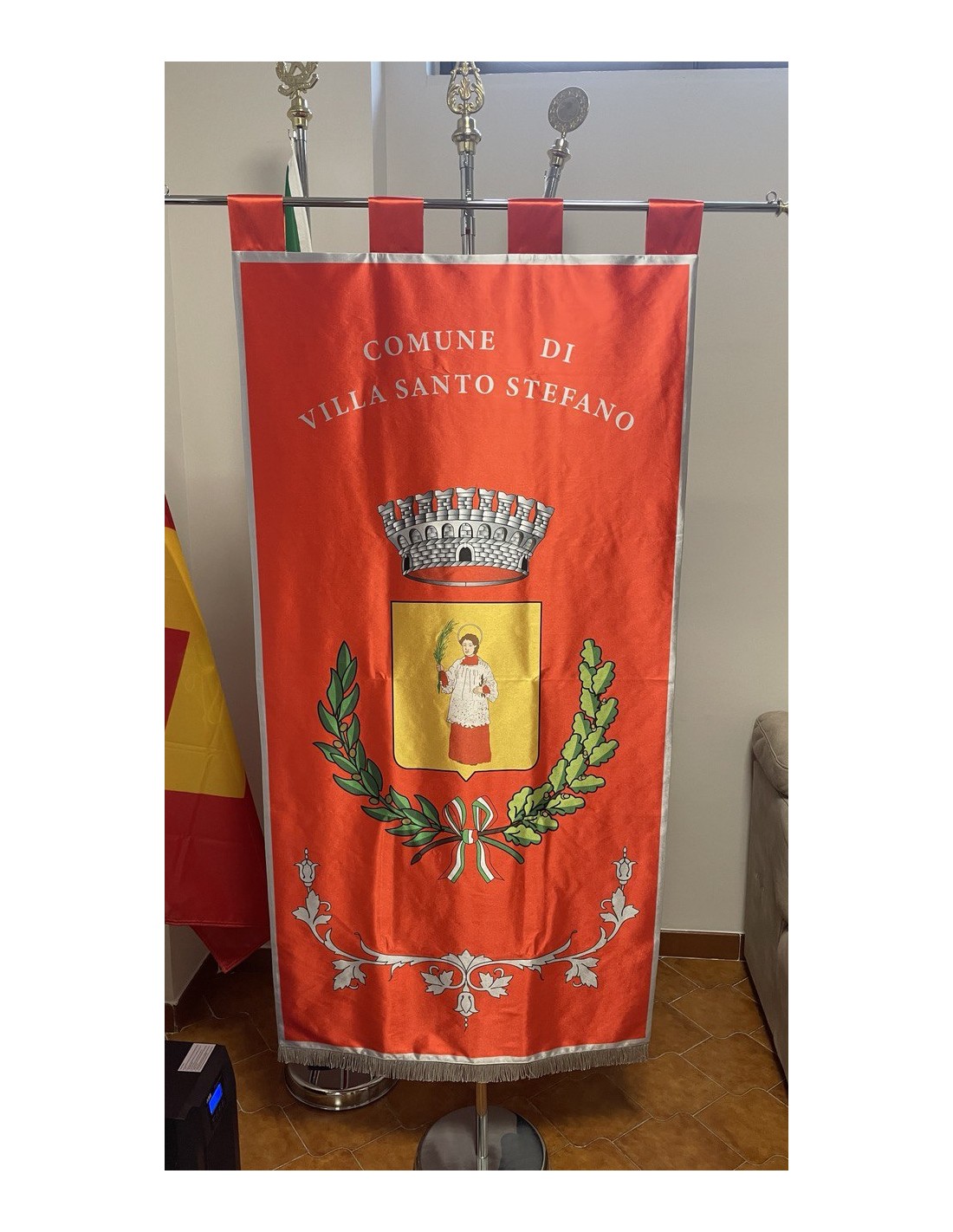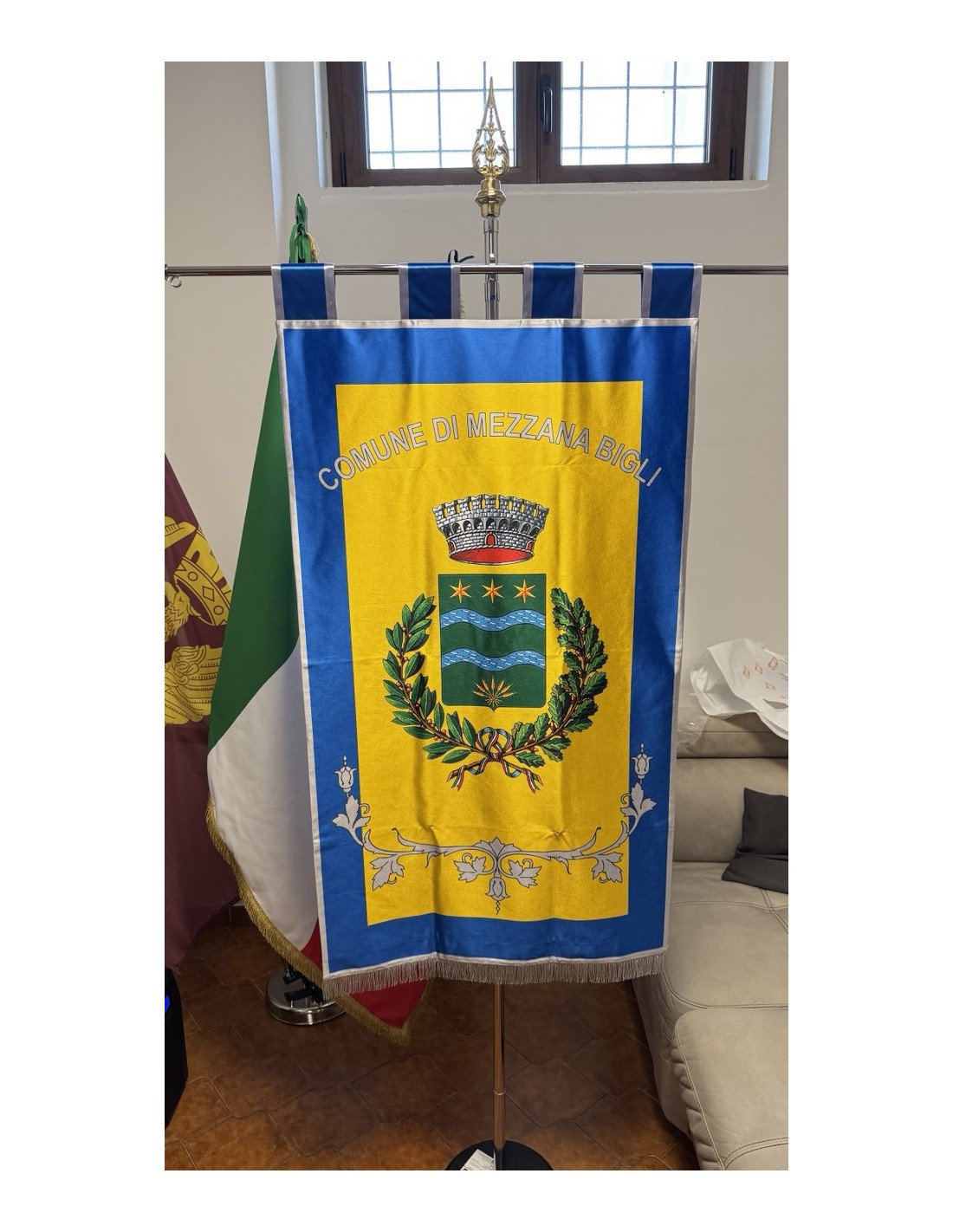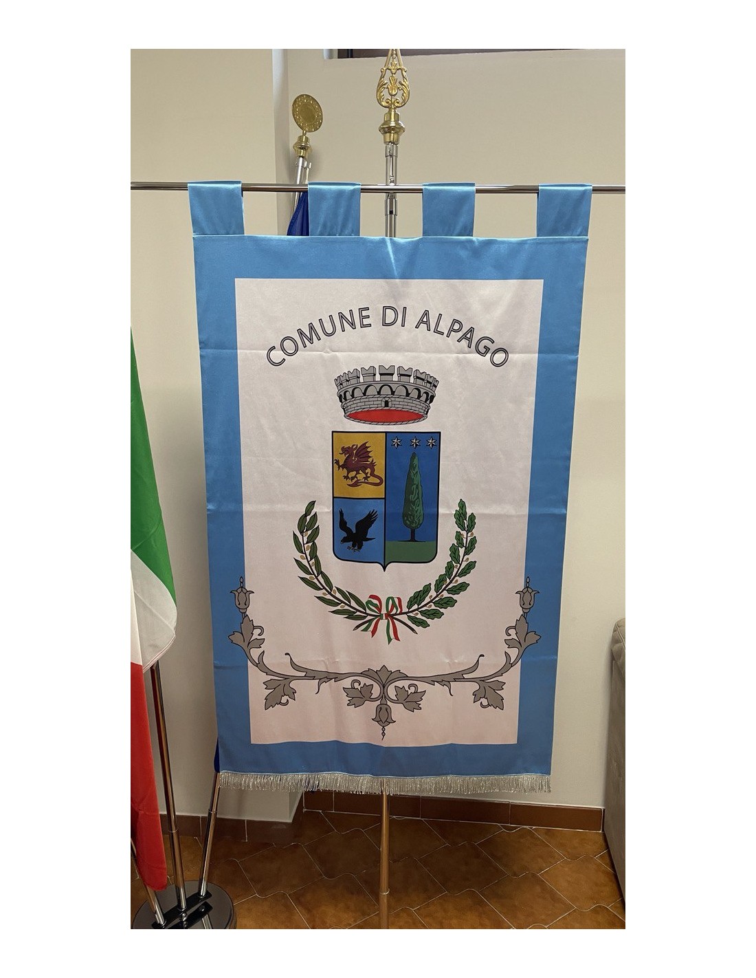 Gonfalone Stampato per Comuni con eccellente qualità, leggero e maneggevole. ideale per essere trasportato.