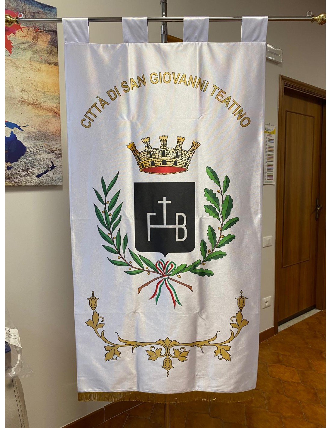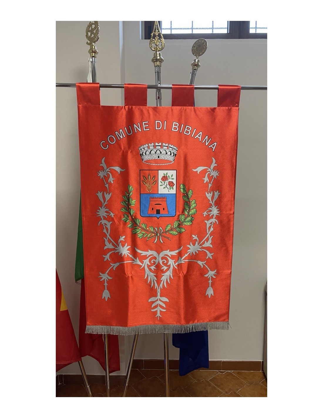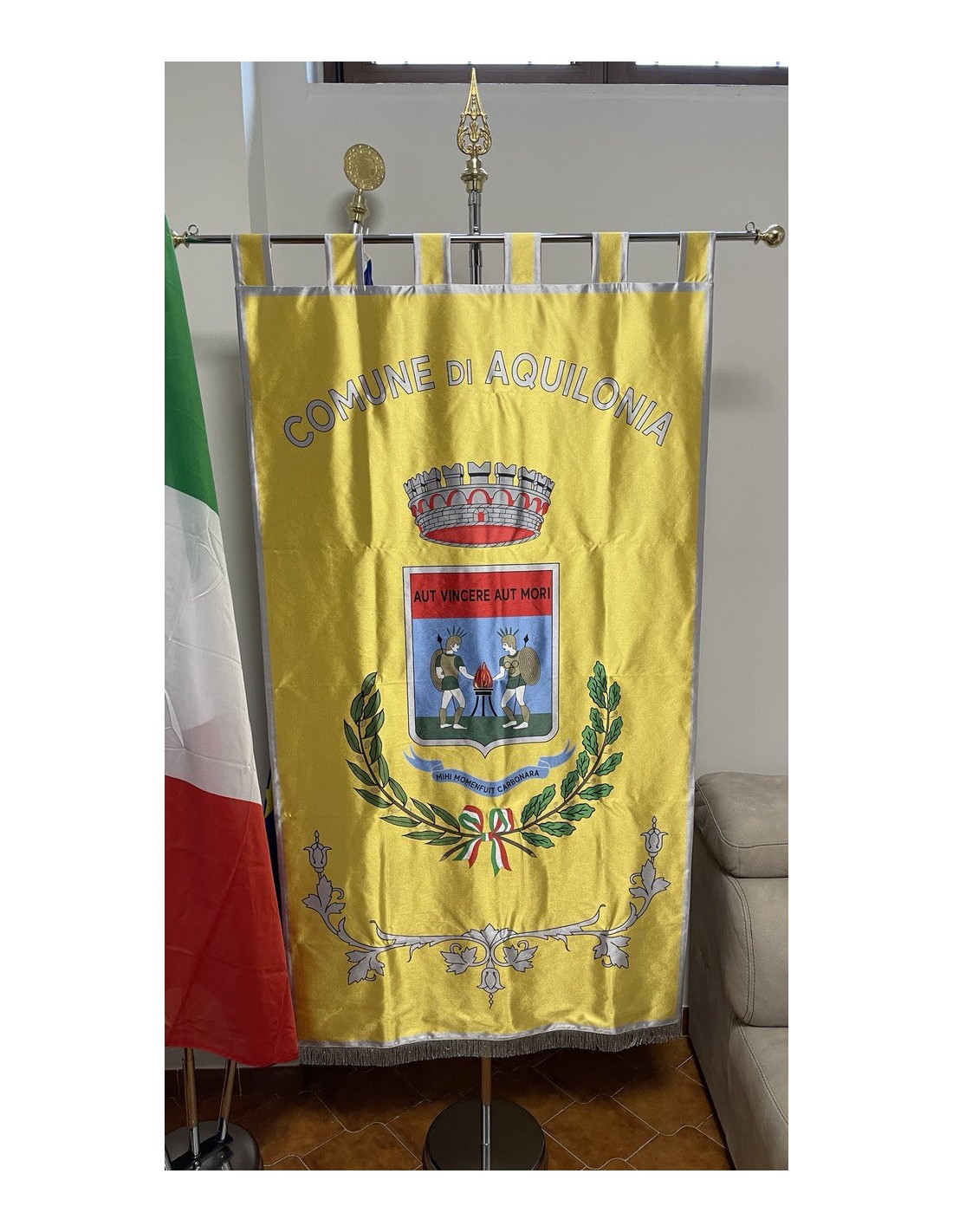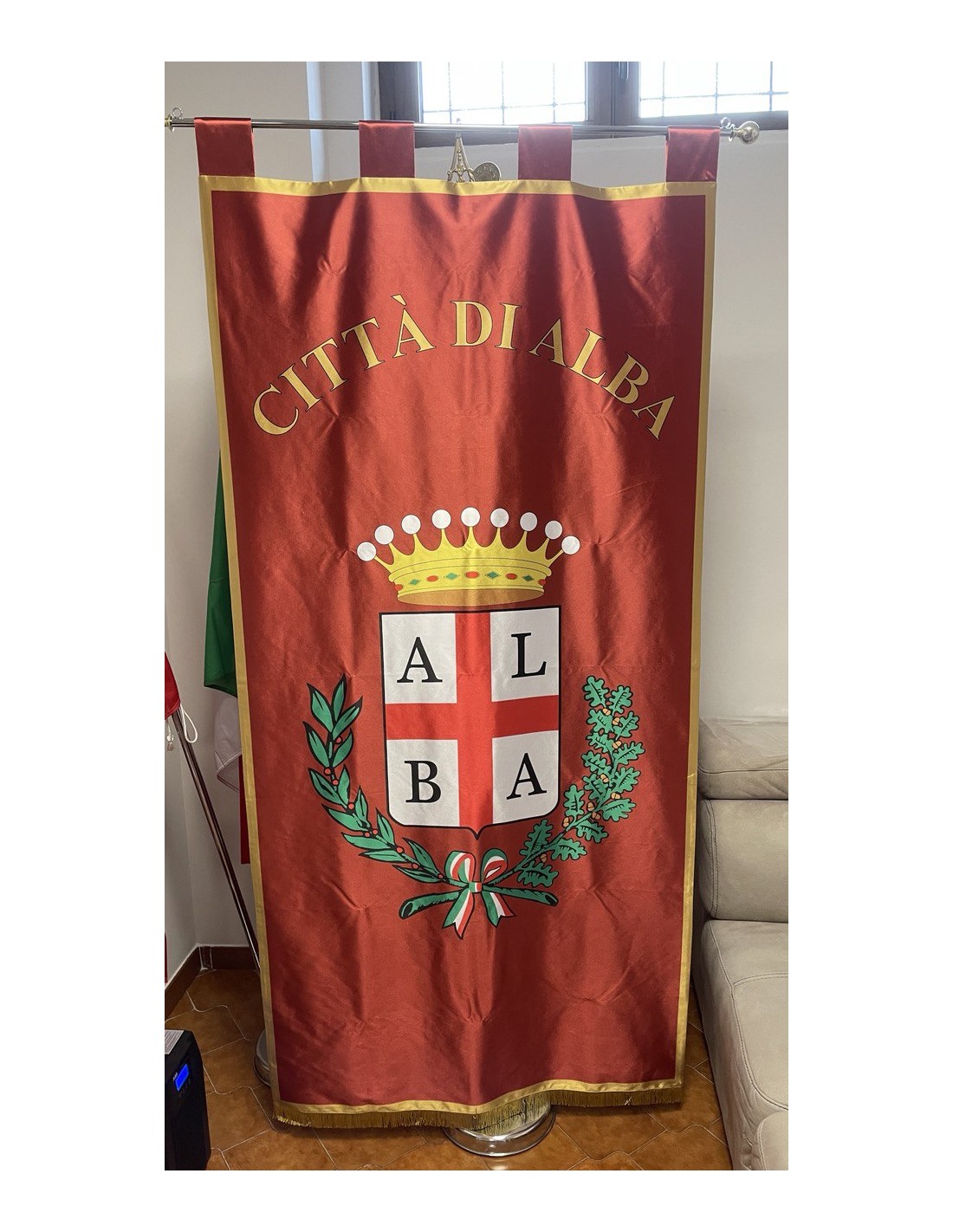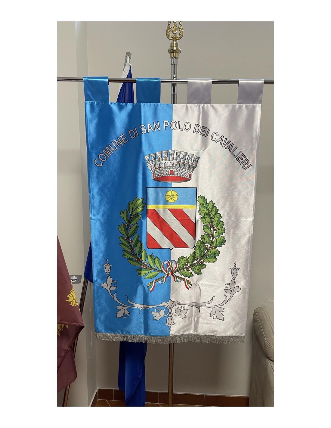 Gonfalone Stampato per Comuni con eccellente qualità, leggero e maneggevole. ideale per essere trasportato.