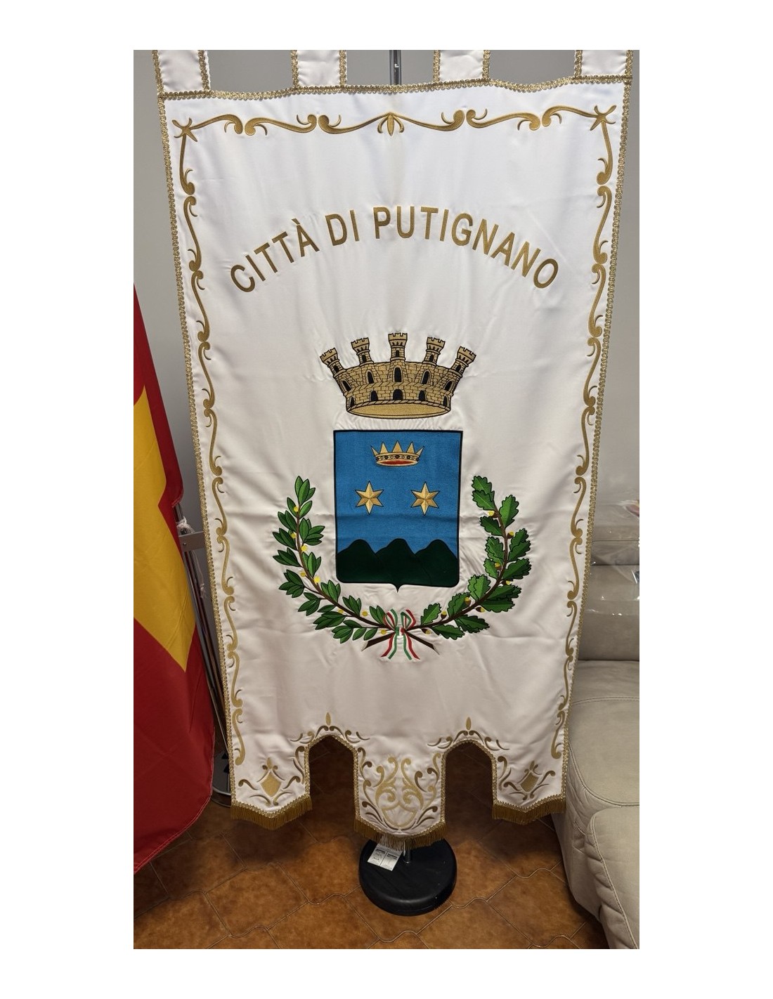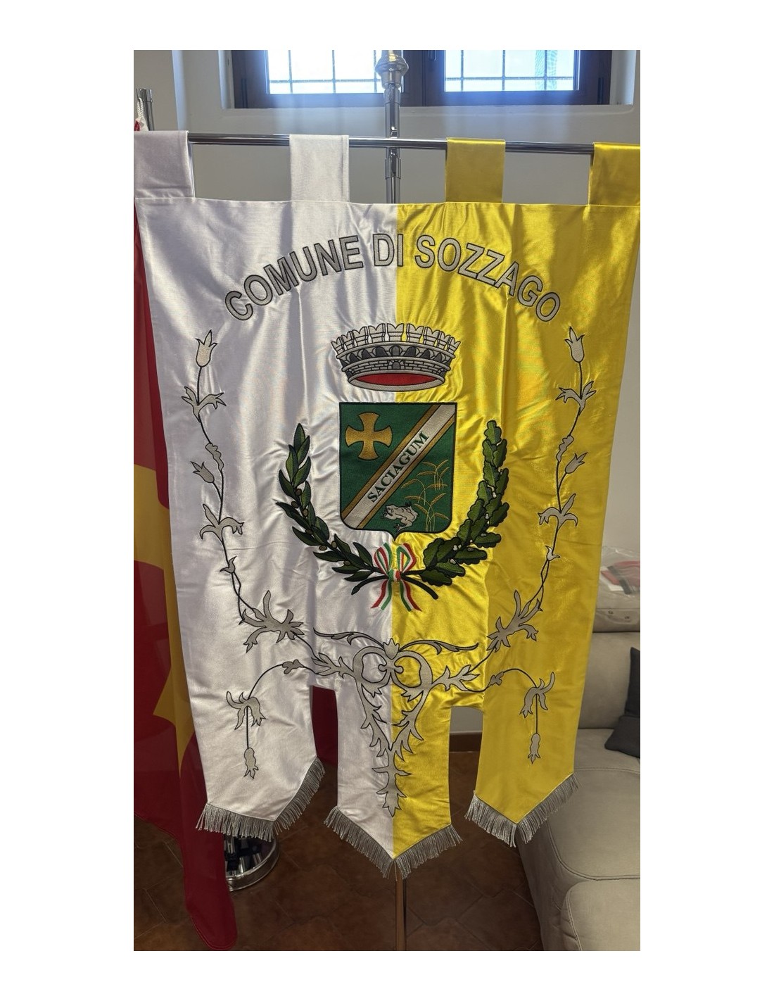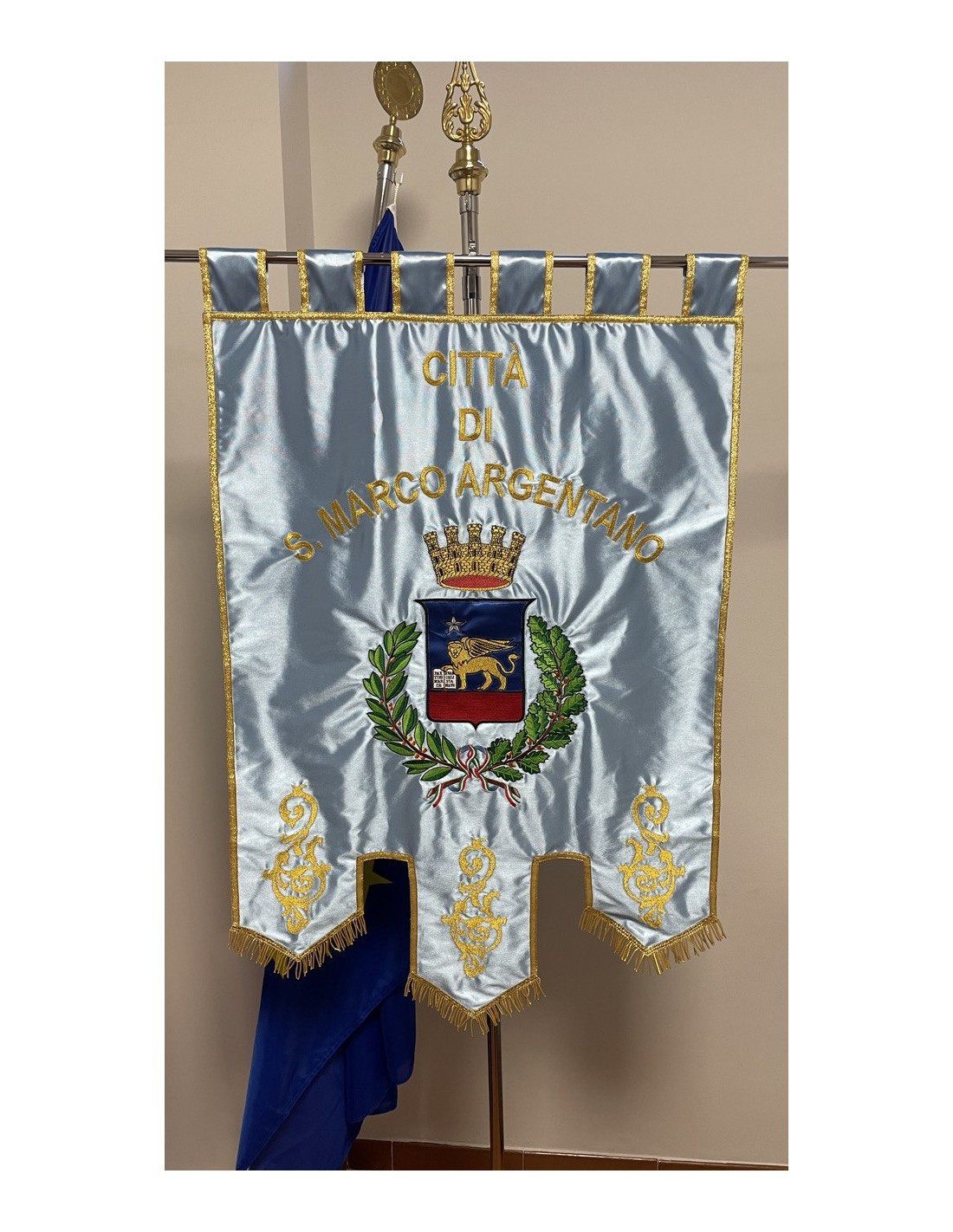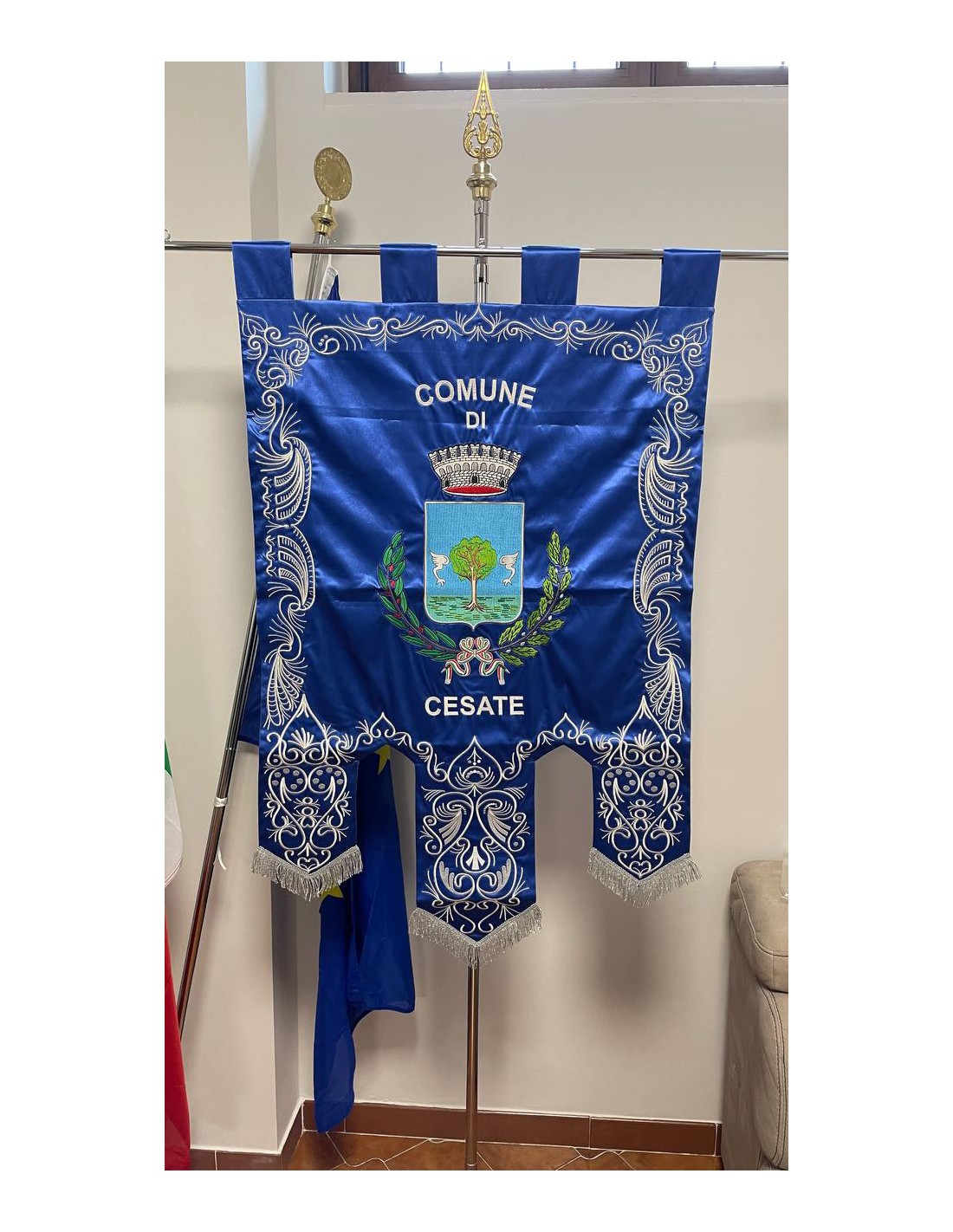 Gonfalone ricamato con code 100,00 iva esclusa di lavorazione aggiuntiva.