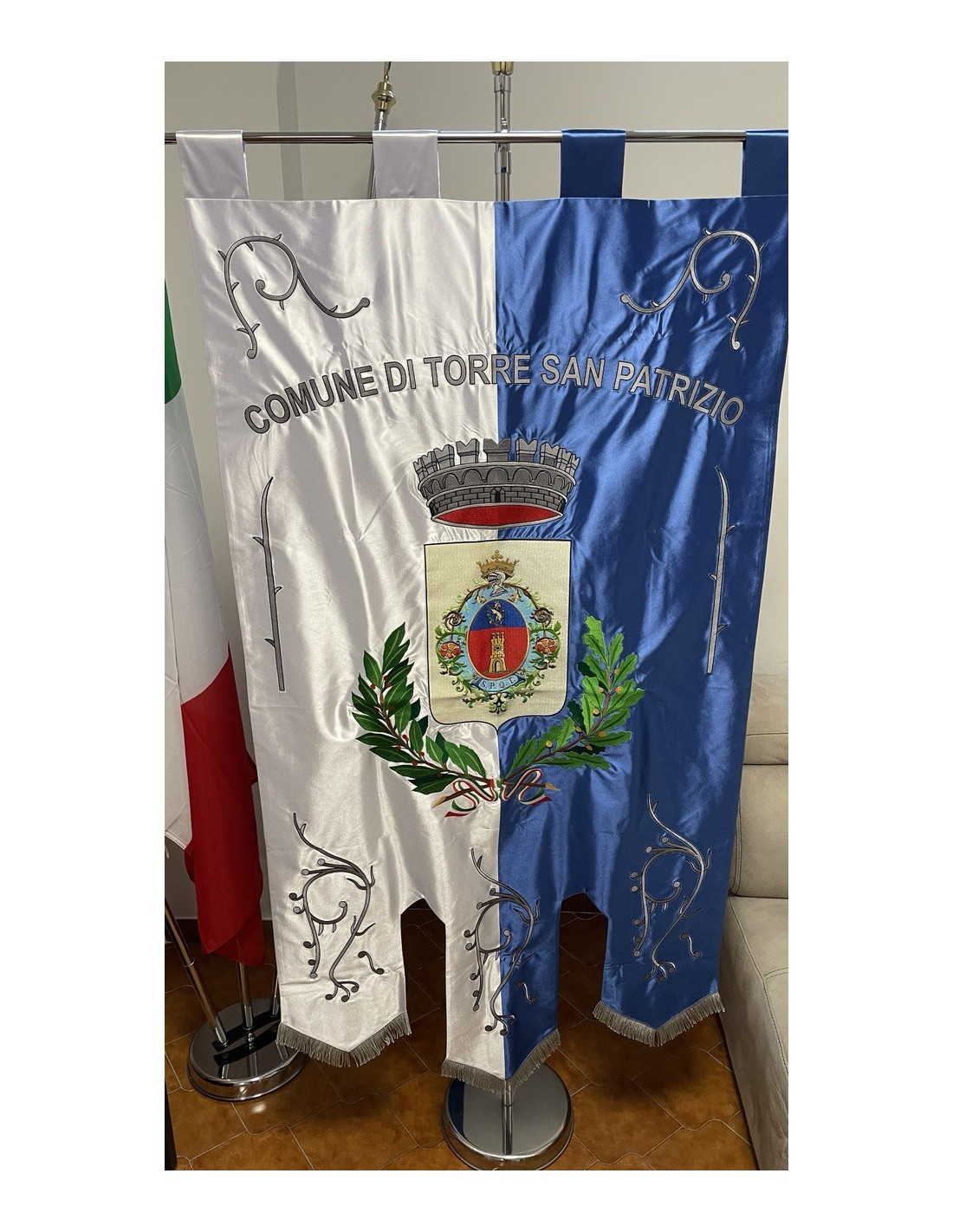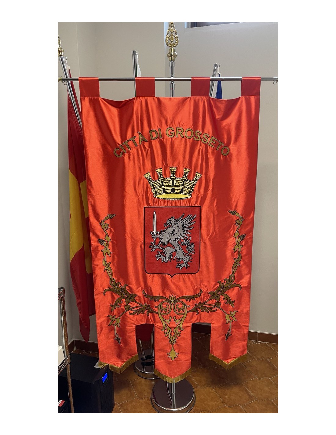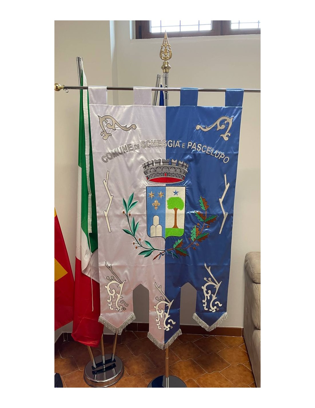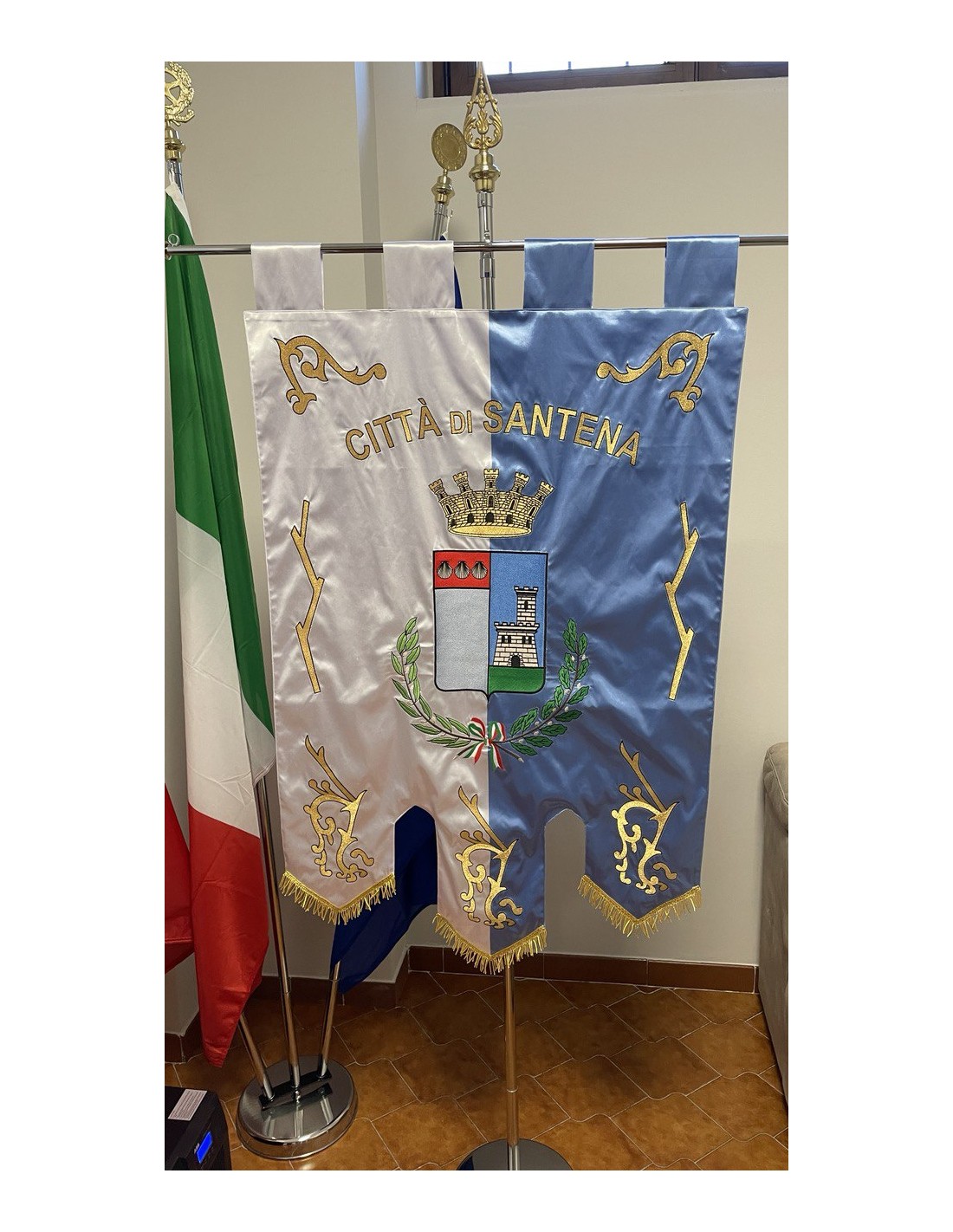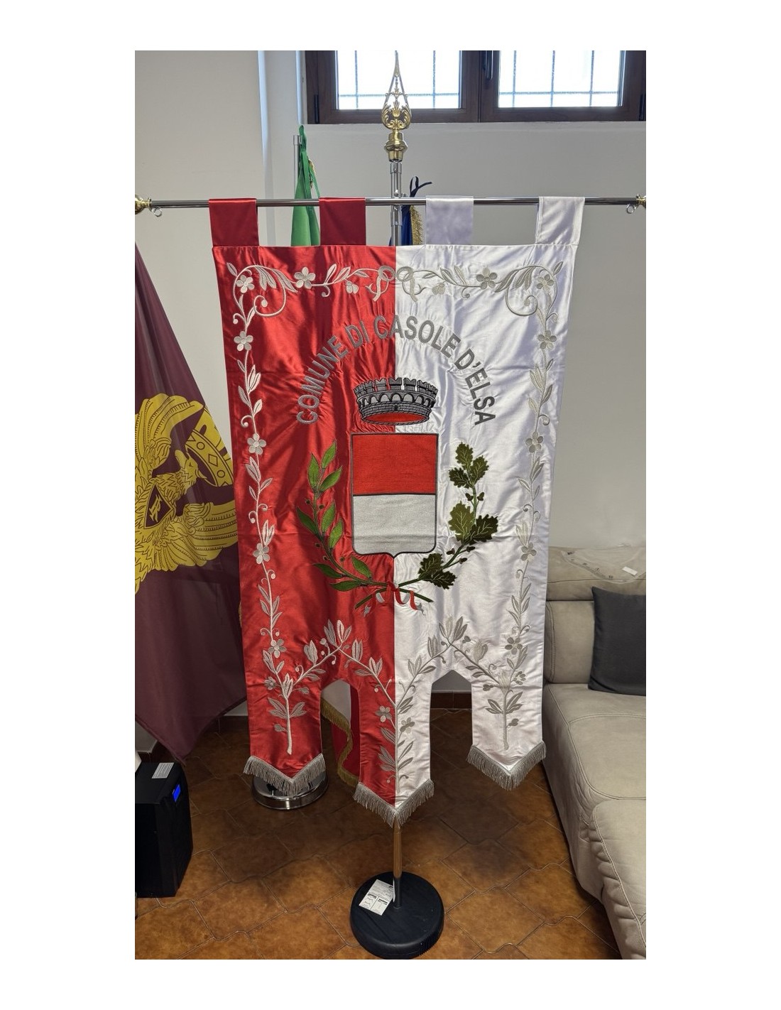 Gonfalone ricamato con code 100,00 iva esclusa di lavorazione aggiuntiva.