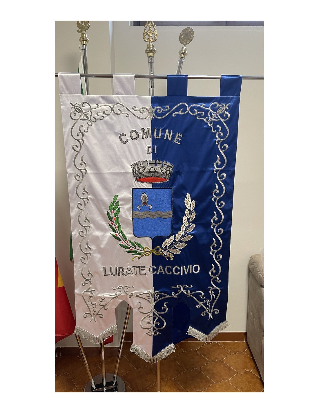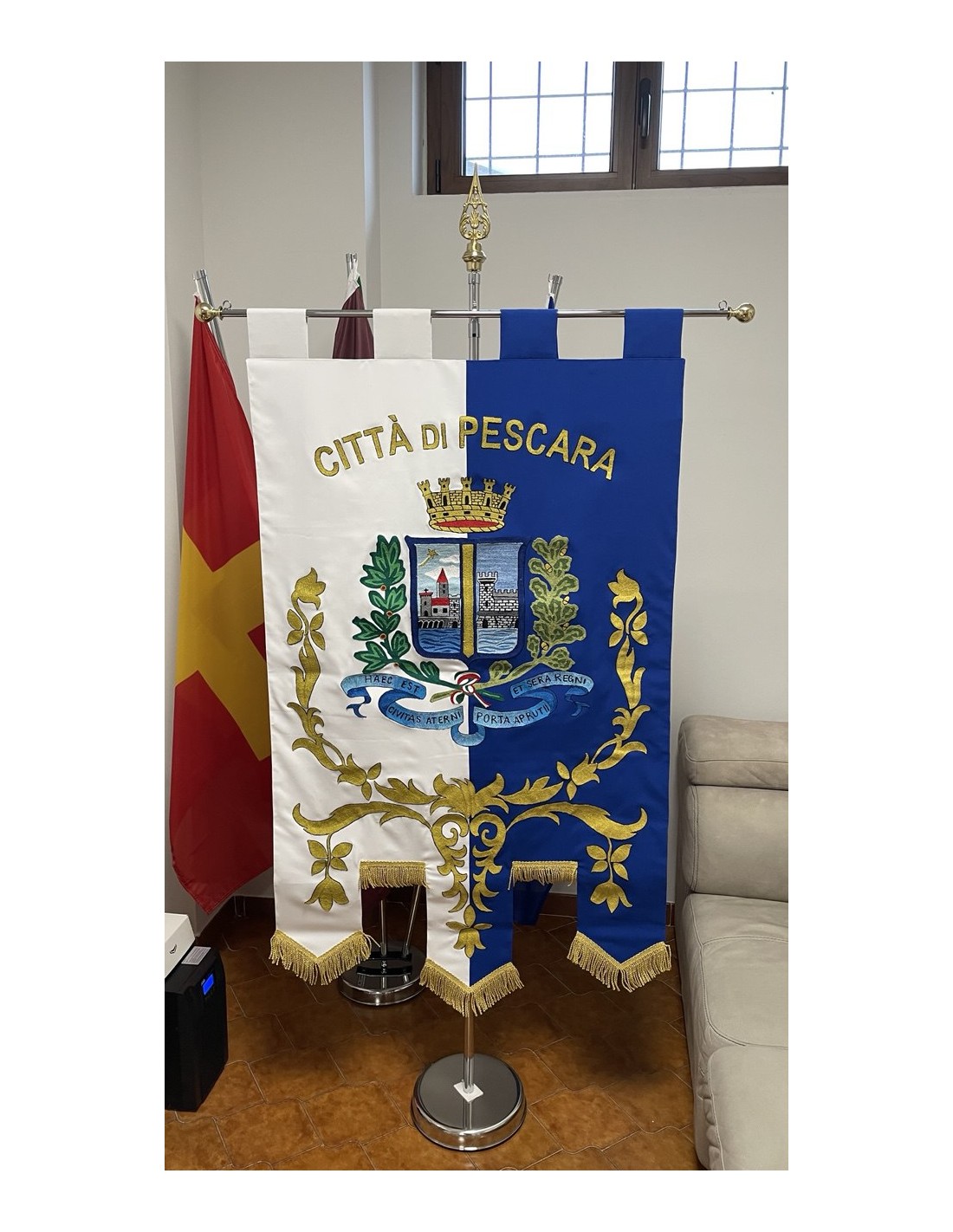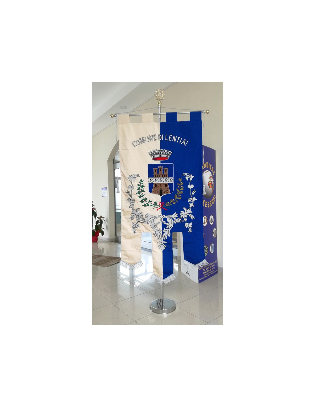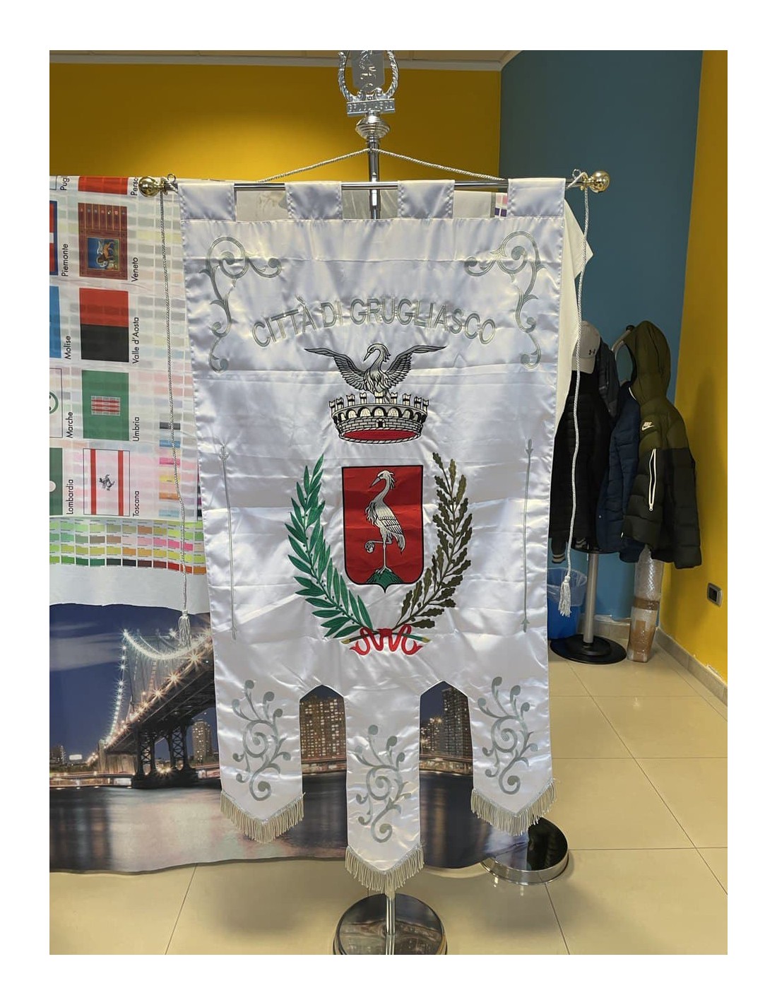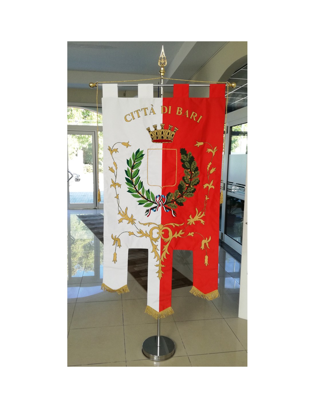 Gonfalone ricamato con code 100,00 iva esclusa di lavorazione aggiuntiva.