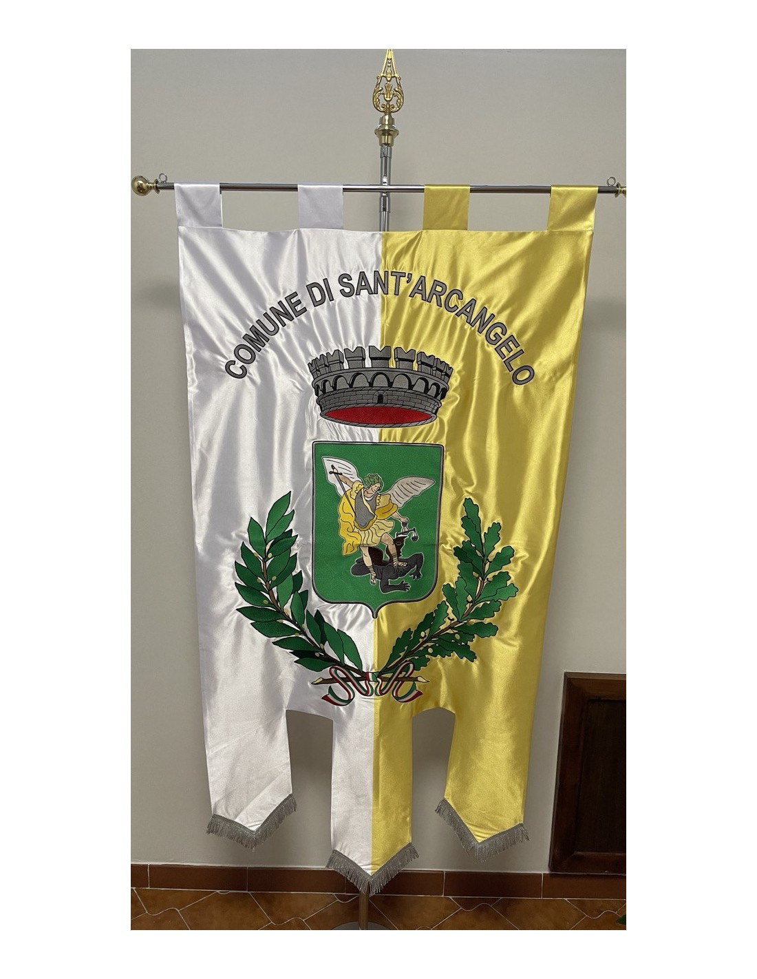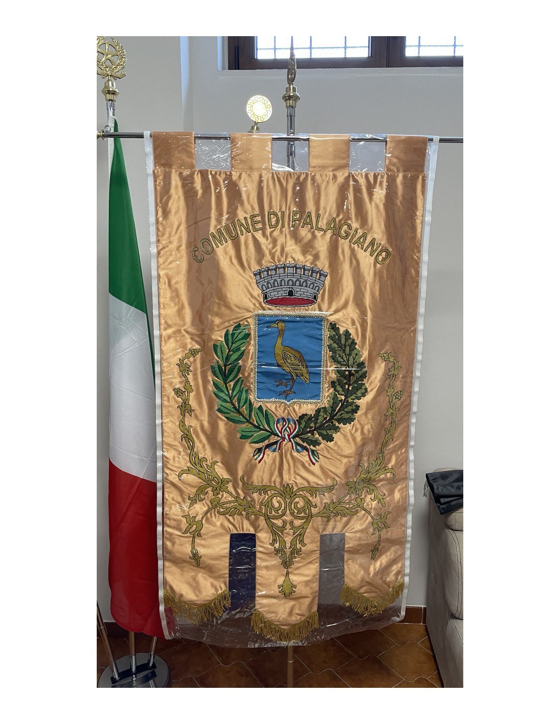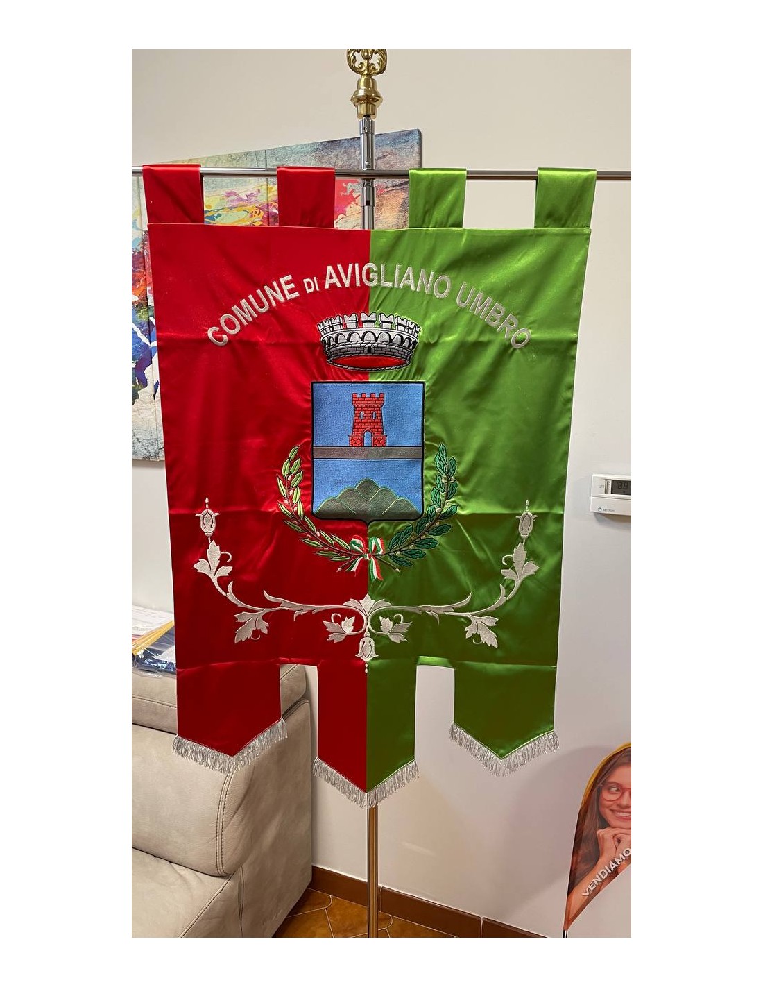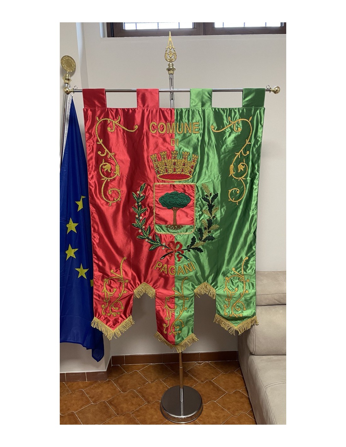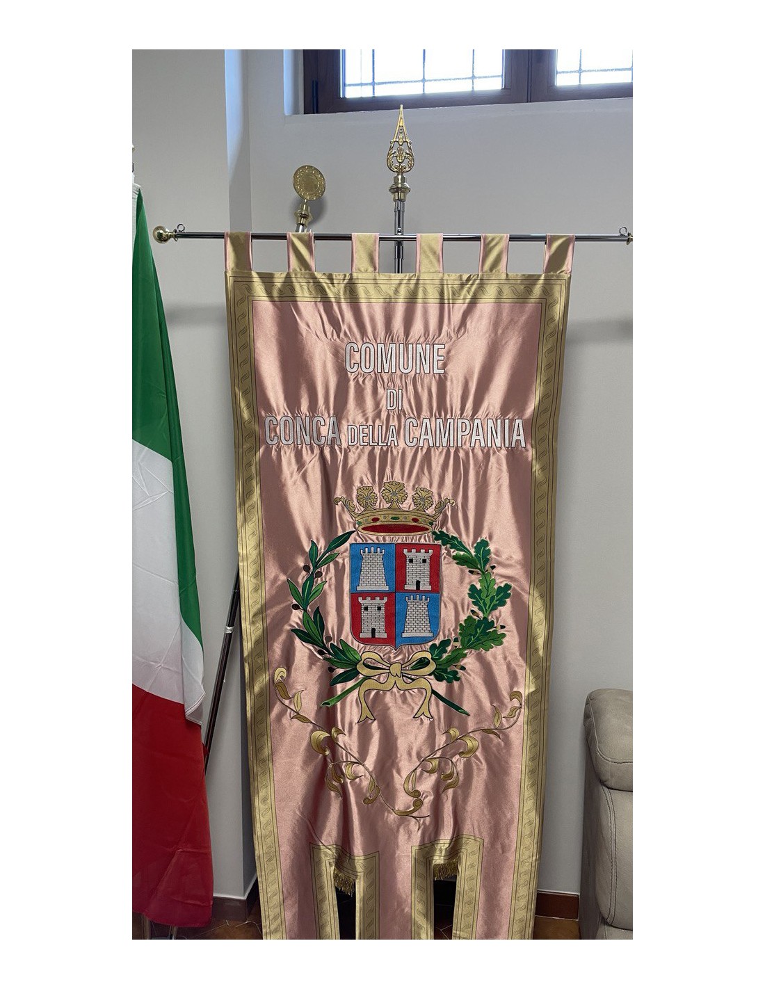 Gonfalone ricamato con code 100,00 iva esclusa di lavorazione aggiuntiva.