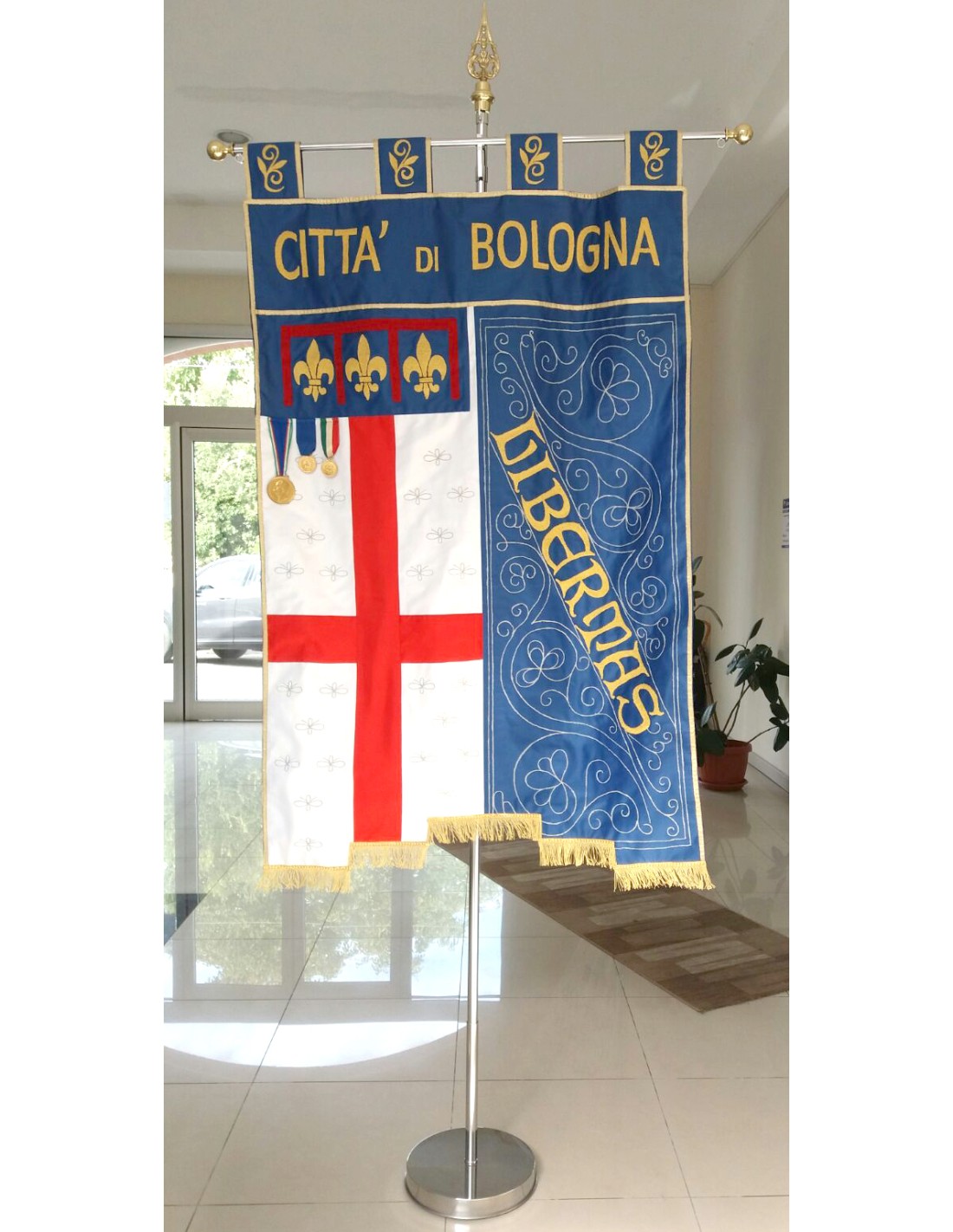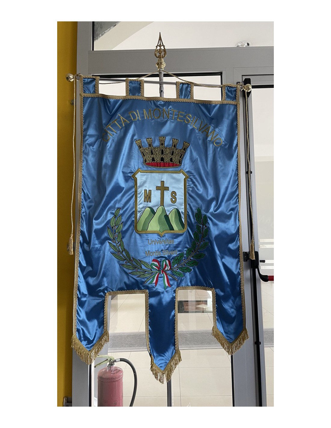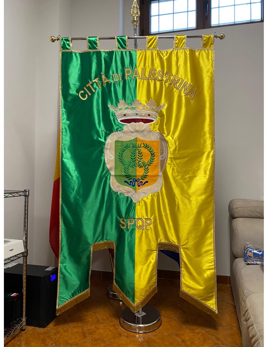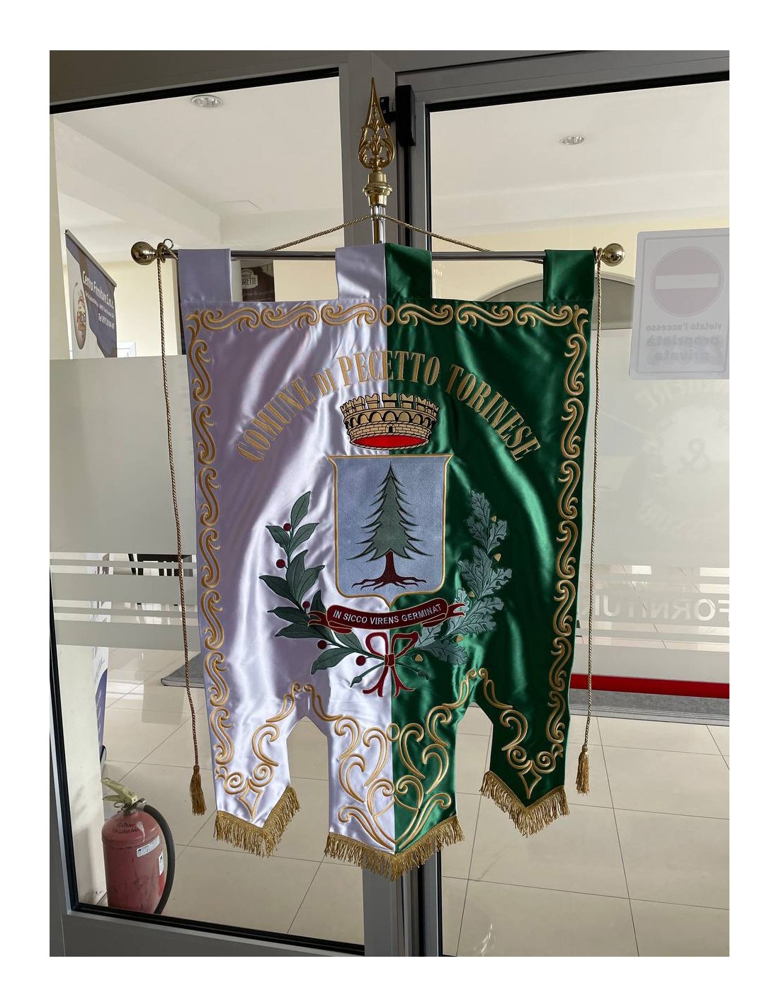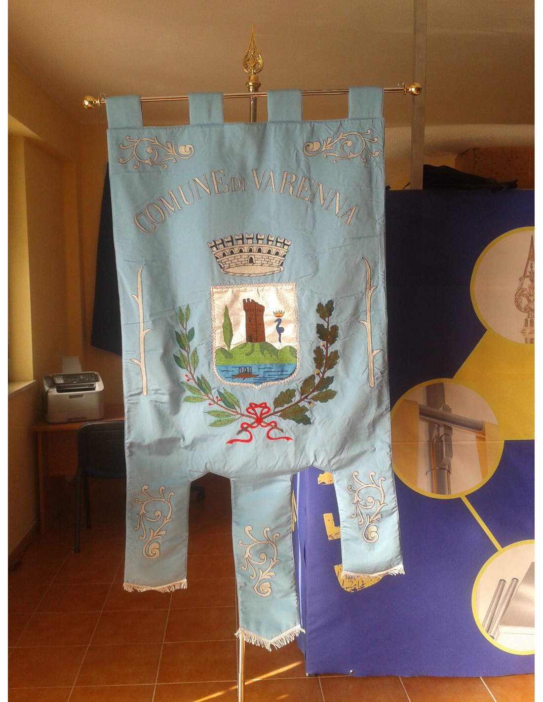 Gonfalone ricamato con code 100,00 iva esclusa di lavorazione aggiuntiva.