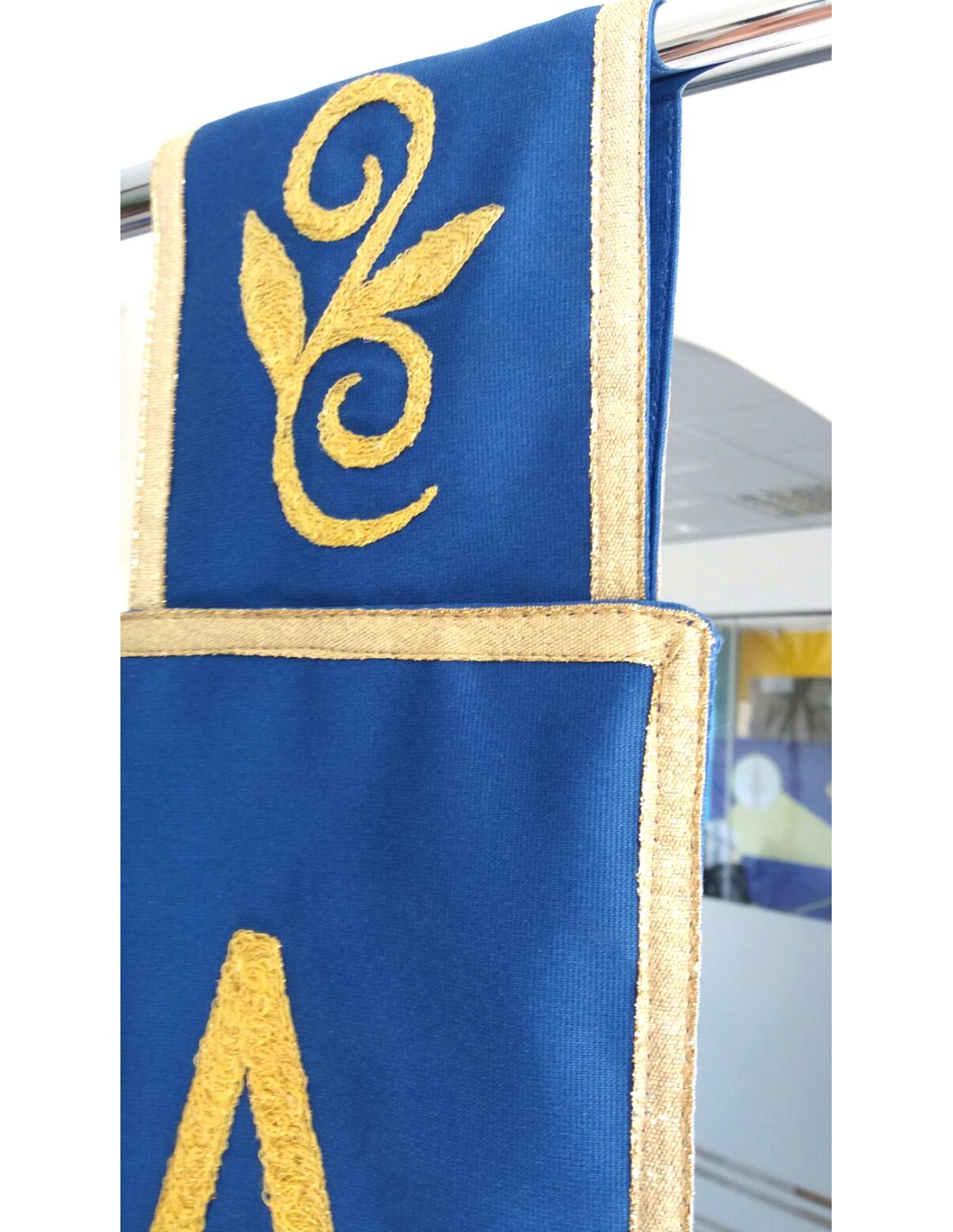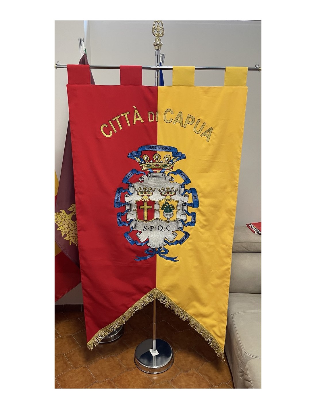 Gonfalone Ricamato a macchina e rinito a mano.