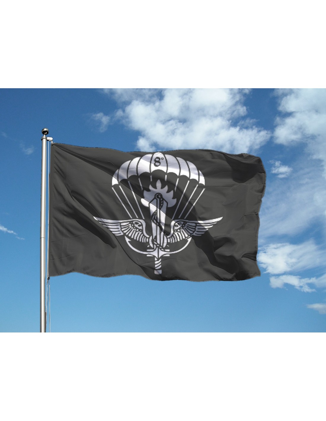 N.2 Bandiere dim. 200x300 cm in poliestere nautico 115 gr al mq con doppie cuciture perimetrali, guaina di rinforzo e corda.